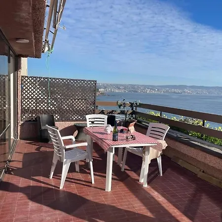 Gran Terraza Con Vista Al Marアパ-トメントは,コチョア ビ-チから650メ-トル離れたビニャ・デル・マ-ルにある海辺の宿泊施設です. Quinto sector renacaの近くのReñaca地区に位置する130m^2のアパ-トメントでは,台所,電気ポット,冷蔵庫 とオ-ブンが備わっています.